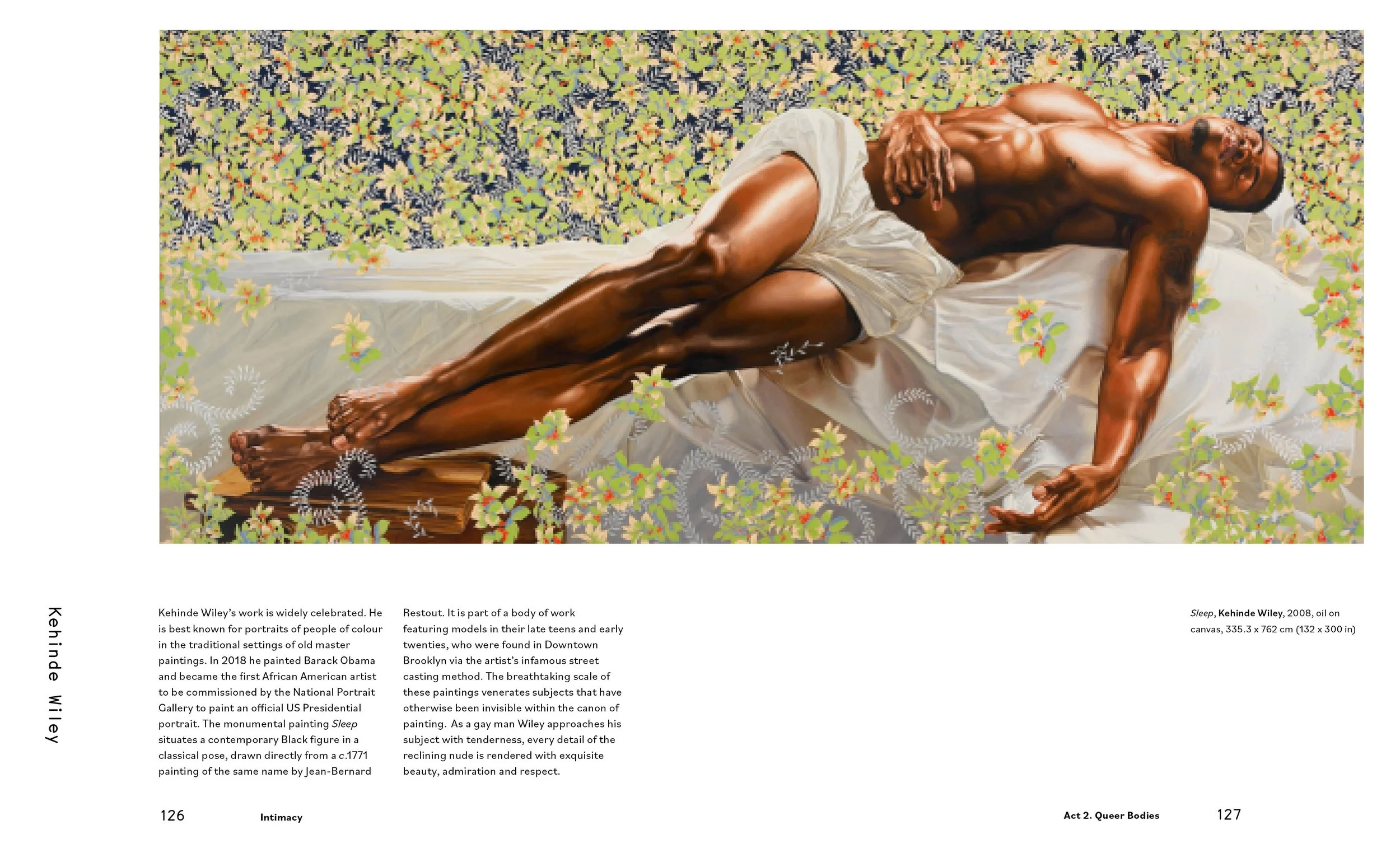 Right: Kehinde Wiley, ‘Sleep’, 2008 as featured in ‘Queer bodies’ by Gemma Rolls-Bently, (Frances Lincoln 2024.)